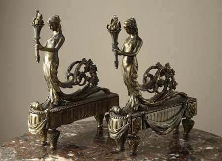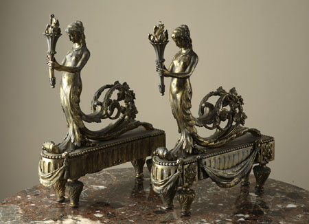 A pair of French Empire gilt bronze chenets