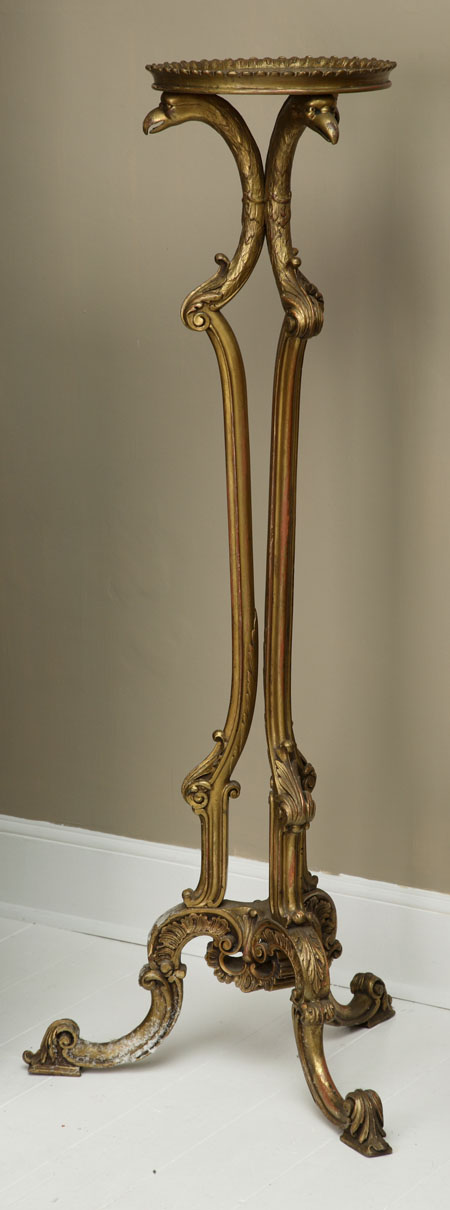 the petal edged platform mounted on eagle headed tripod supports applied with scrolling foliage