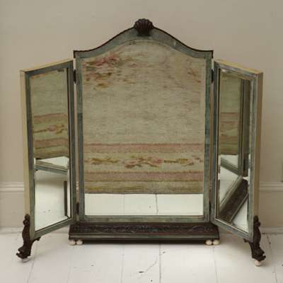 A large Art Deco shagreen and ivorine triple section dressing table mirror