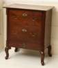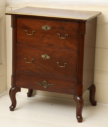 the rectangular top with brass moulding, above two drawers between canted fluted angles, on cabriole legs