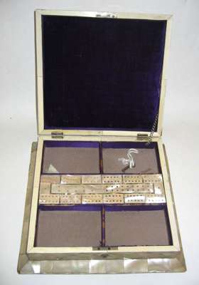 A Victorian mother-of-pearl games box