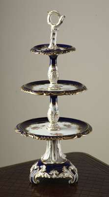 A 19th century English porcelain three tier cake stand