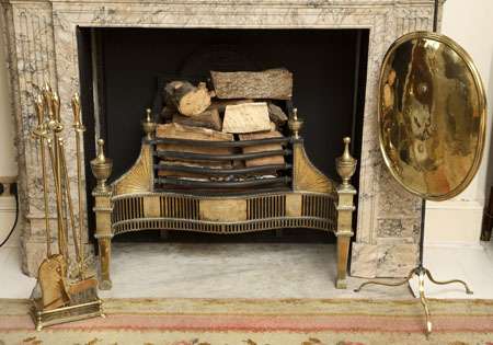 A brass and cast iron fire basket