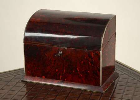 with brass stringing, the domed lid revealing a four section interior, bears makers mark, ‘J.C.Vickery. Regent St. W.1’