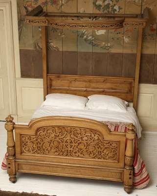 A Victorian birch half tester bed