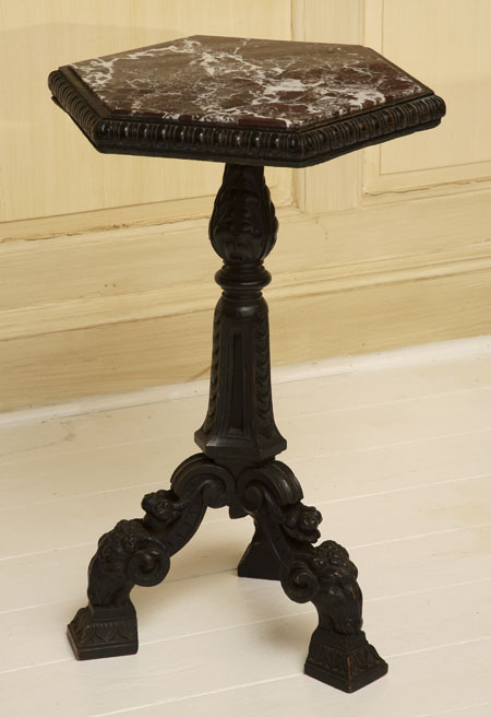 A 19th century French marble topped ebonised wood gueridon