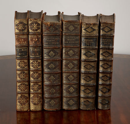 Historiarum sui temporis. Frankfurt, 1625, 3 volumes in 2, folio, contemporary calf, spines gilt, spines worn; Basil, Saint. Opera. Basle, Froben, 1566, folio, contemporary blindstamped pigskin over wooden boards, some worming of text, worn; Bayle, Pierre. Dictionnaire historique et critique. Amsterdam, 1740, 4 volumes, folio, contemporary calf, spines gilt, slightly worn; Hoffmann, J.J. Lexicon universale. Leiden, 1698, 4 volumes folio, contemporary calf, spines gilt, worn; Vincent, Saint. Sermones sancti Vincentii fratris ordinis predicato [no place, early 16th century], 8vo, modern half vellum, slight damp-staining, some corners repaired (a quantity)