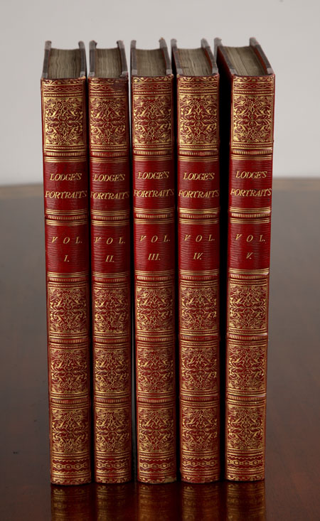Portraits of Illustrious Personages of Great Britain, 1823, 12 volumes, 4to, engraved plates on india paper, contemporary red half morocco, spines gilt, bookplates of E.J. Sidebotham