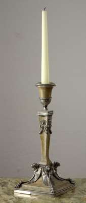 An early 20th century shagreen and silver metal mounted candlestick