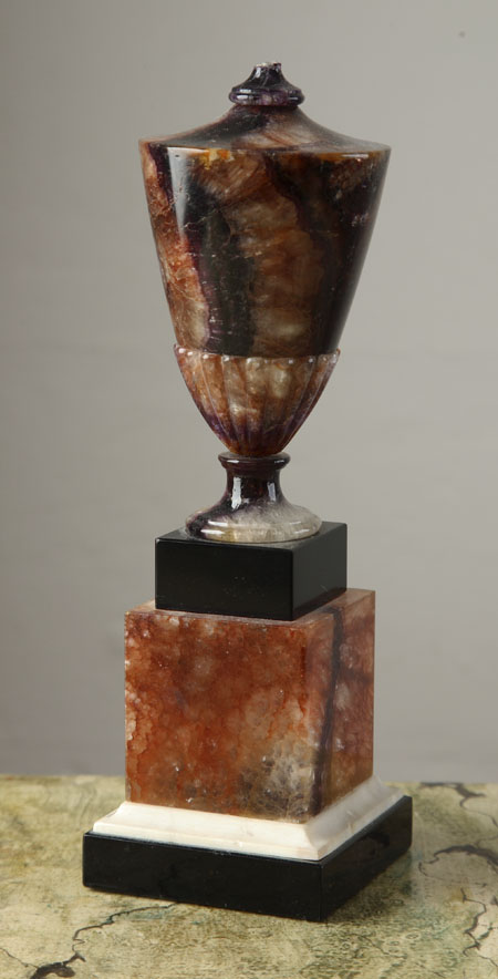 the tapered urn with lobed lower section and socle, on a stepped sectional square plinth