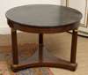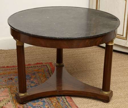 of Empire style, the moulded circular black marble top on turned columns with cast capitals, on concave tripartite base with flattened bun feet