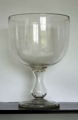 in the form of a drinking glass, with bell shaped bowl and baluster stem with circular foot
