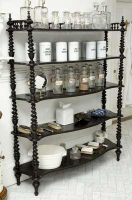 comprising five moulded serpentine tiers, the top with three quarter gallery, between urn and spirally turned supports, with urn finials, on turned tapering legs