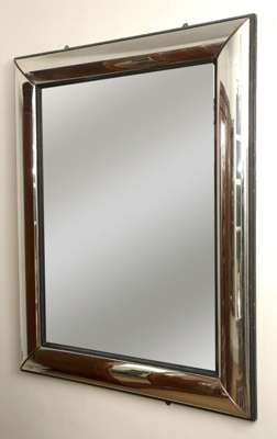 the bevelled rectangular mirror plate with ebonised slip, in curved chrome frame