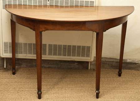 the D-shaped top above plain frieze, on square tapering legs with toupee feet