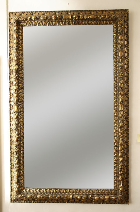 the bevelled rectangular mirror plate in fruiting and stiff leaf moulded frame