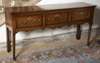 the moulded rectangular top above three mahogany crossbanded drawers, shaped apron, on turned tapering legs with pad feet