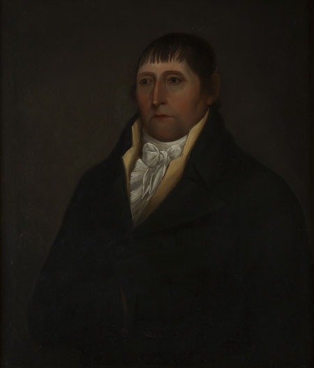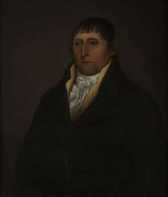 HALF LENGTH PORTRAIT OF A GENT WITH WHITE STOCK AND MUSTARD WAISTCOAT