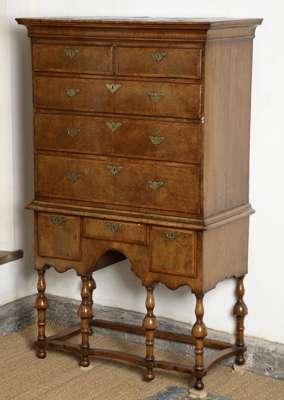 An early 18th century walnut tallboy