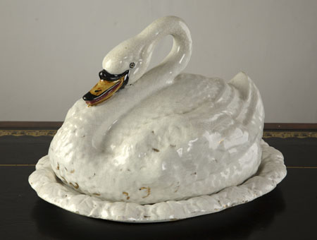 A 19th century Staffordshire swan form ceramic butter dish and cover