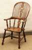 the arched spindle filled back with central heart pierced splat, the shaped solid seat on baluster turned splayed legs joined by an H-stretcher