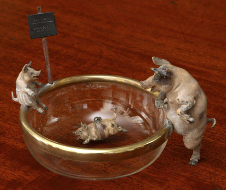 A small early 20th century Austrian cold painted bronze and glass novelty dish