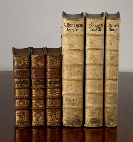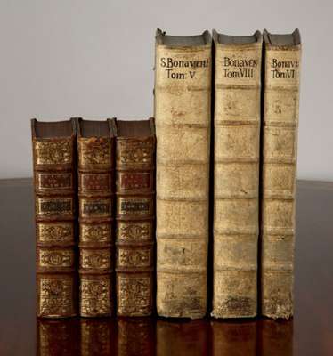 Opera omnia. Lyons, 1668, 7 volumes in 6, folio, contemporary blindstamped pigskin over wooden boards, clasps, spines slightly dust-soiled, one spine erroneously numbered 'VIII'; Mede, Joseph. The Works. London, for R. Royston, 1677, folio, later vellum; Baillet, Adrien. La vie des saints. Paris, 1739, 9 (of 10) volumes, 4to, contemporary calf, spines gilt, head and tail of spines worn; and 2 others (18)