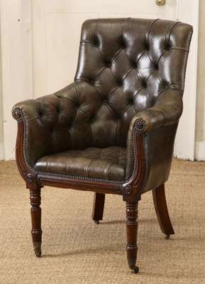 A Regency mahogany and leather upholstered tub armchair