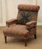 the rectangular back, cushioned headrest, tasselled armrests and seat upholstered in Paisley shawl fabric, on turned tapering legs and spreading feet