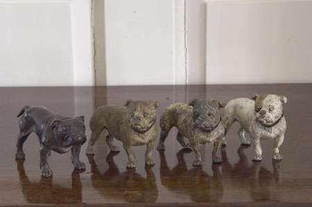 Four late 19th/early 20th century Austrian cold painted bronze bulldogs
