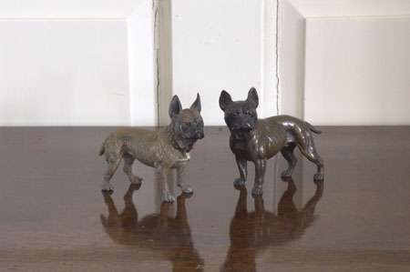 stamped 'GESCHUTZT'; and a patinated bronze figure of a French bulldog (2)