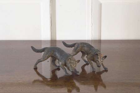 Two late 19th/early 20th century Austrian cold painted bronze German shepherds