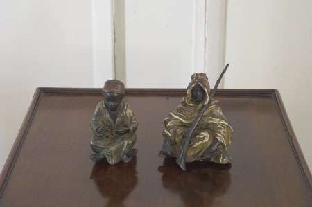seated, bears Bergmann amphora and stamped 'GESCHUTZT'; and a cold painted bronze of a seated young moor (2)