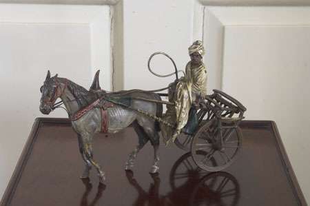 in the form of an Arab riding a horse drawn cart, bears Bergmann amphora, stamped 'GESCHUTZT'