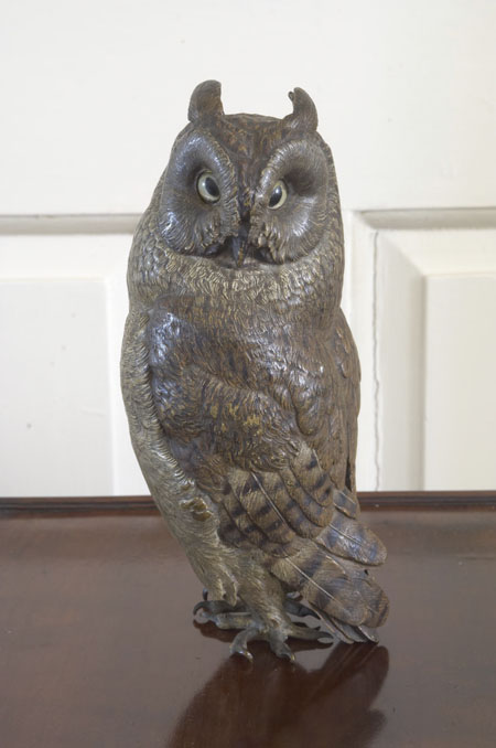 A late 19th/early 20th century Austrian cold painted bronze owl by Bergmann
