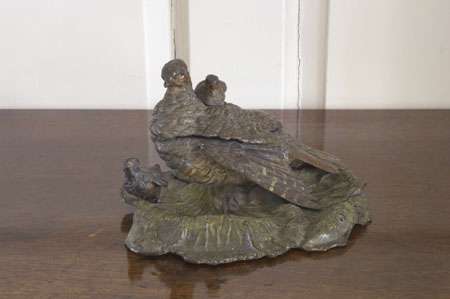 in the form of a partridge and chicks resting on a cabbage leaf, stamped 'GESCHUTZT'