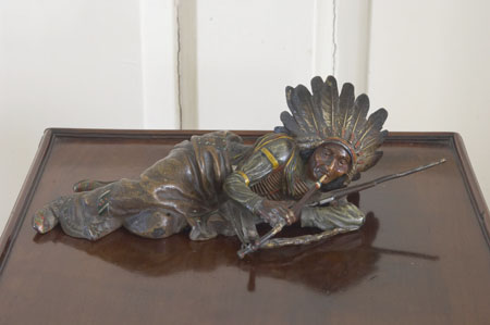 in the form of a recumbent Red Indian smoking a pipe, signed 'C. Kauba'