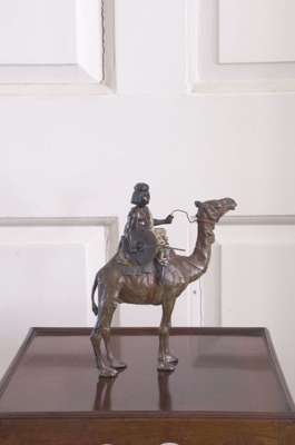 in the form of a Moor riding a camel, bears Bergmann amphora, stamped 'GESCHUTZT'; and a patinated bronze figure of a camel (2)