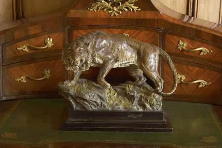 standing on a rock, raised on a rectangular wood base, bears Bergmann amphora, stamped 'GESCHUTZT'