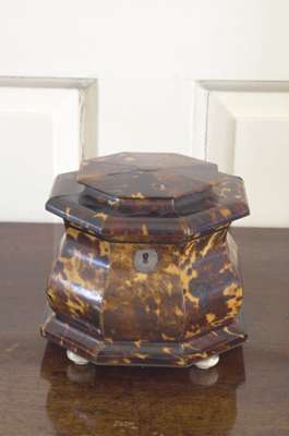 A Regency tortoiseshell and silver inlaid bombe tea caddy