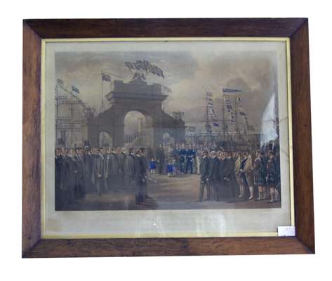 depicting ‘The Landing of Her Majesty Queen Victoria at Aberdeen’, engraved by J Harris, 70cm x 50cm; and a pair of prints of ‘The Great International Exhibition’, 23cm x 47cm (3)