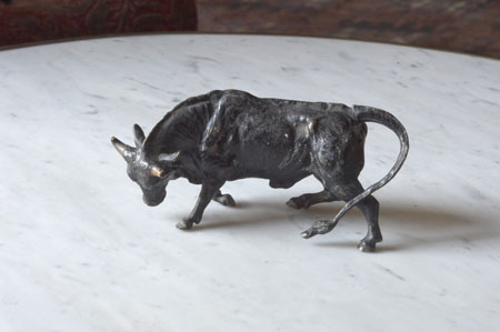 A late 19th/early 20th century Austrian cold painted bronze bull by Bergmann