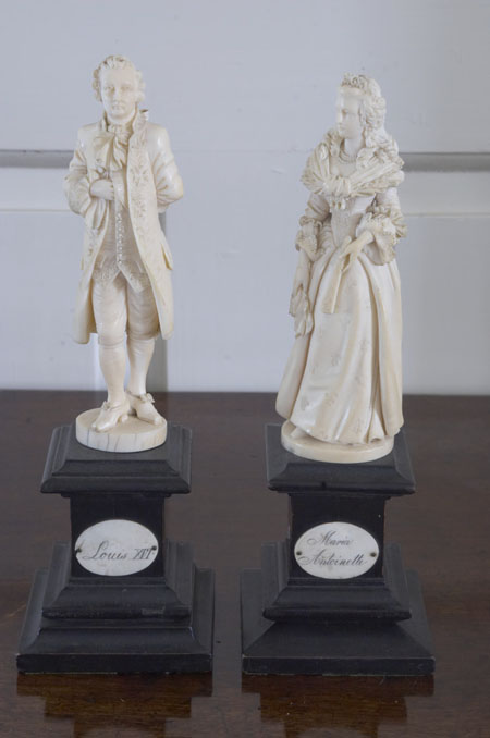 depicting 'Louis XVI' and 'Marie Antoinette', each raised on a ebonised pedestal base (2)