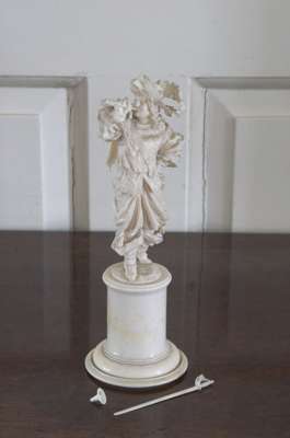 of a musketeer, raised on a turned ivory pedestal base