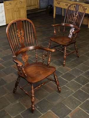 A set of eight stained ash and elm Windsor armchairs