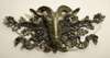 the head within an acorn leaf, berry and trailing ribbon surround