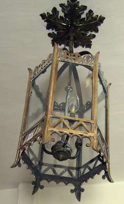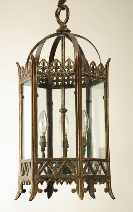 A pair of brass hexagonal hall lanterns