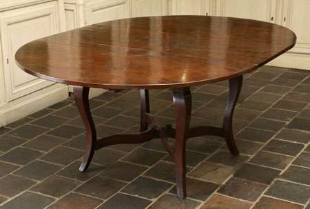 with oval top, enclosing an additional leaf, on square cabriole legs joined by an X-stretcher