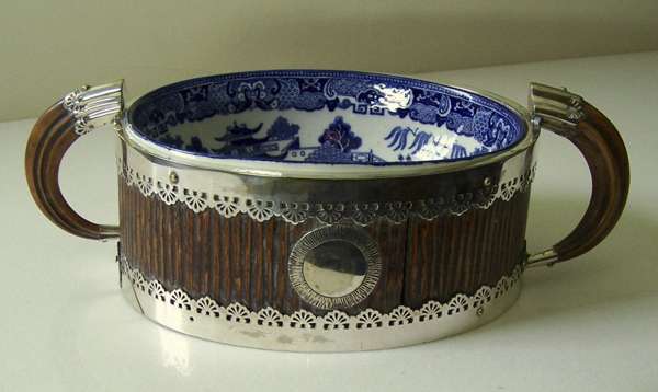 with a blue printed oval dish within, decorated with chinoiserie scene
