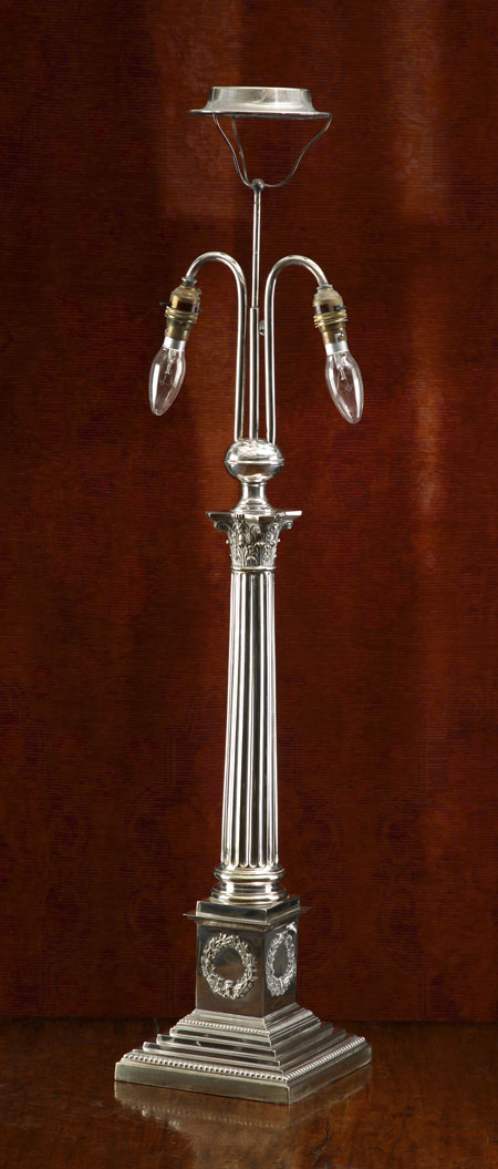 of Corinthian column form and with stepped beaded square base, bears inscription, 'Presented to Mr & Mrs James P. Rudolf by the staff of the Standard Marine Insurance Co. Ltd 10th June 1919'